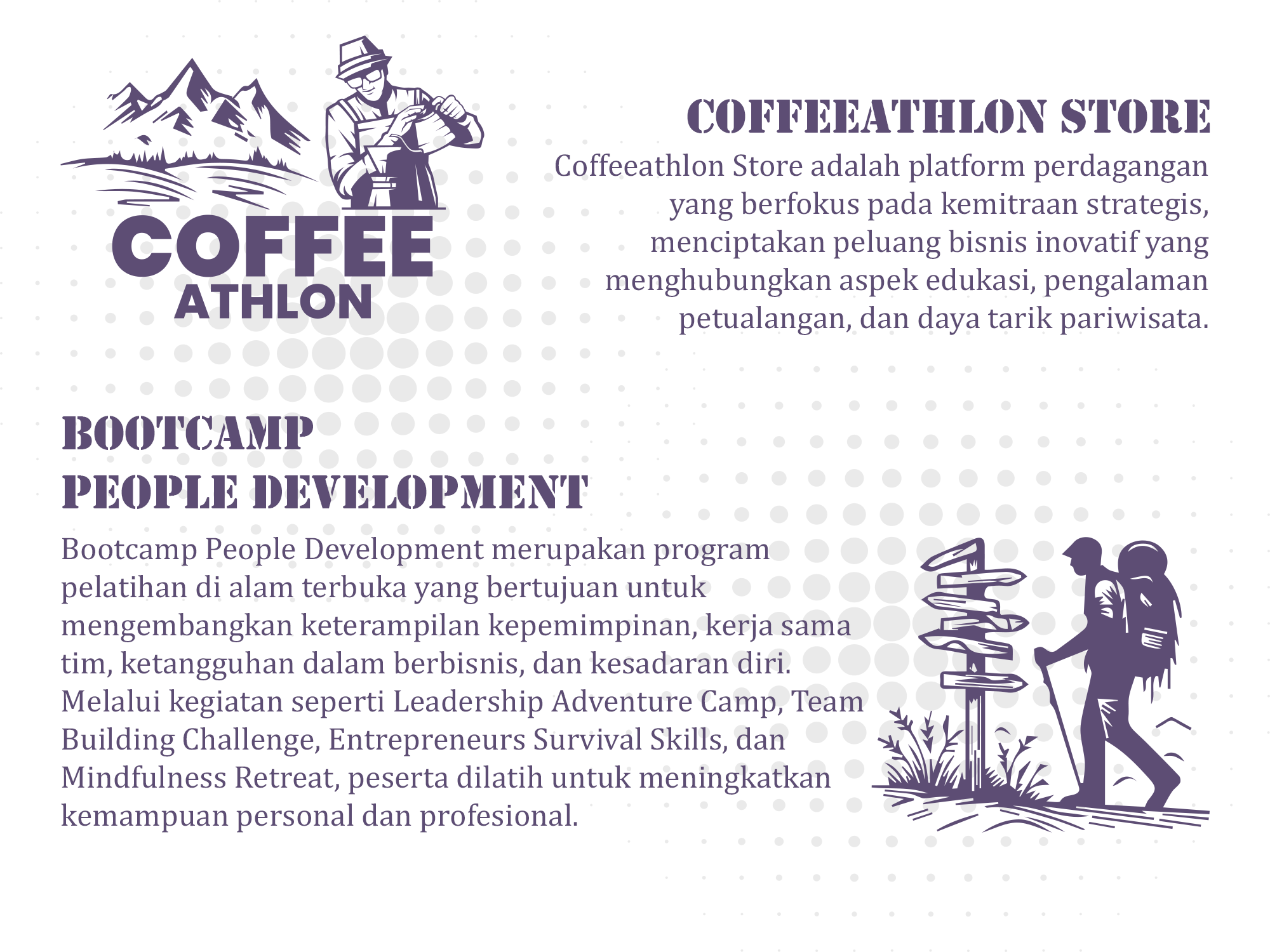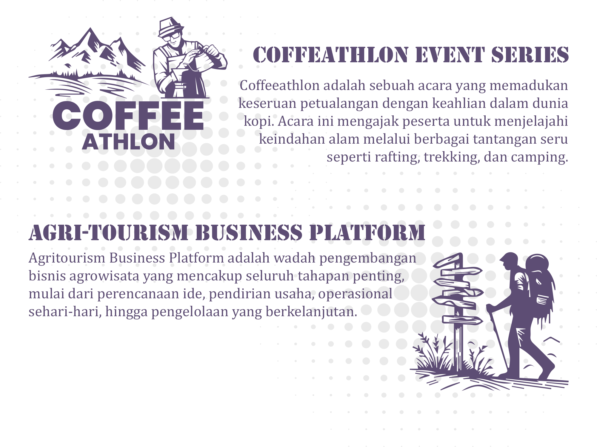 Coffeeathlon berfokus pada pengembangan Coffenomic, ekosistem bisnis terpadu yang mengintegrasikan inovasi, edukasi, petualangan, dan pariwisata secara berkelanjutan. Coffenomic menciptakan nilai tambah di setiap rantai pasok kopi dengan keseimbangan ekonomi, sosial, dan lingkungan, memadukan semangat kopi dan athlon untuk terus melampaui batas dan menginspirasi.